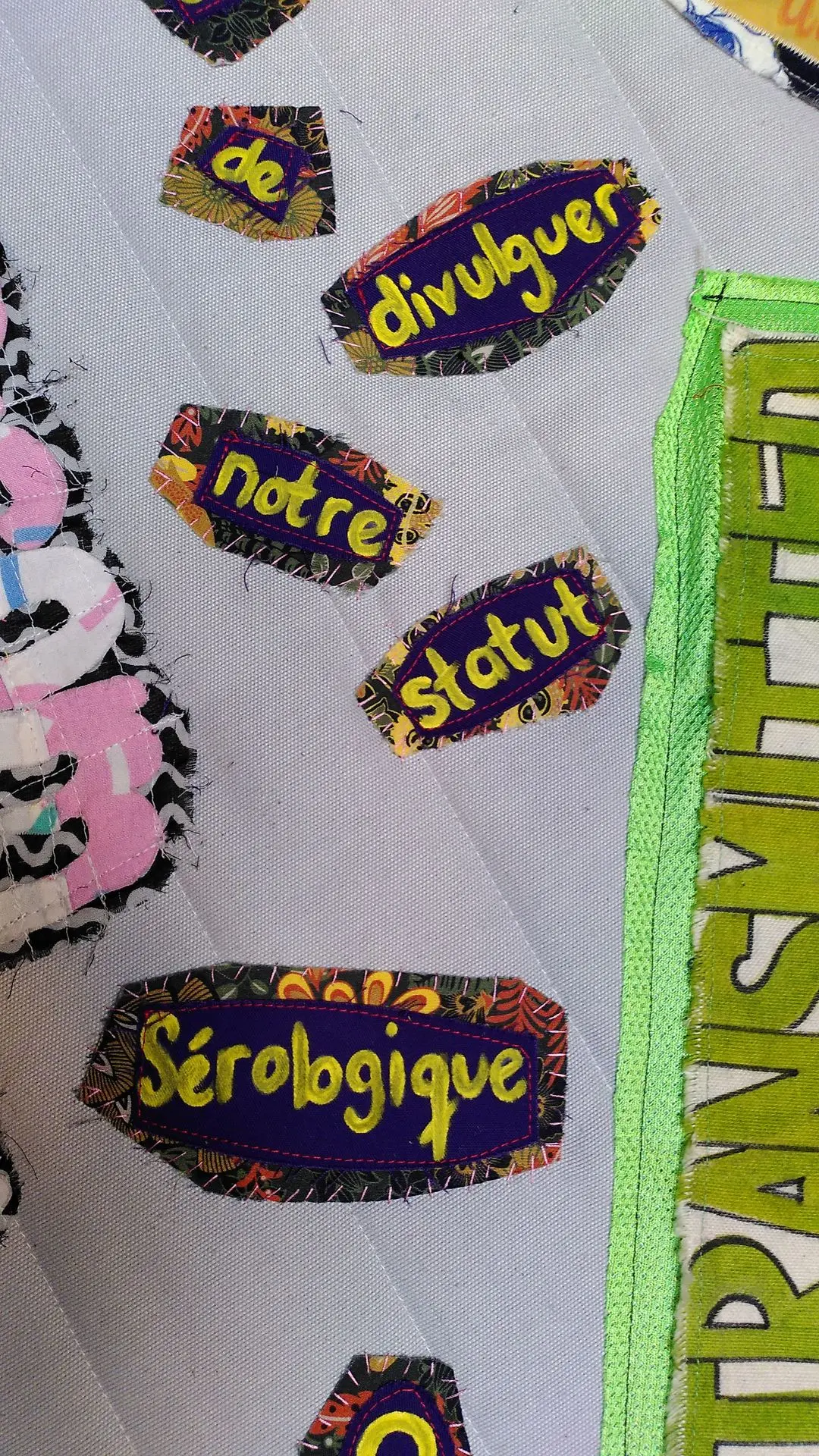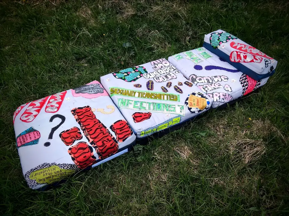 Without going into too much detail here you will find images of the few objects that were made for this project such as The AIDS Blanket, which was inspired by the Aids Quilt and The AIDS Sofa which was conceived in community through various processes including discussions, research, and hand sewing as community actions.